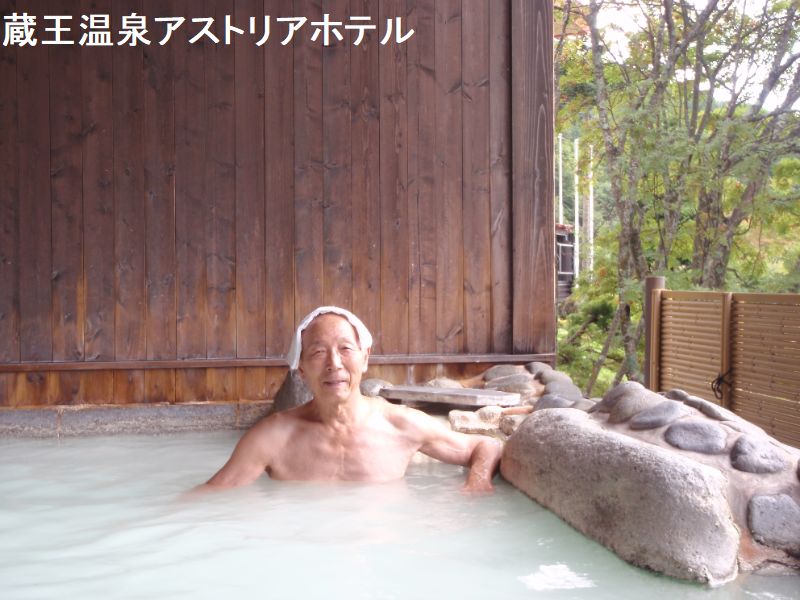 赤い屋根と白い壁のメルヘンチックな本格リゾートホテル、蔵王アストリアホテルは標高960m、蔵王温泉の中で一番の高台に位置にあります。露天の湯からは、遠く朝日連峰の山並みまで見渡すことができます。新緑芽吹く春、紅葉に彩られた秋は特に絶景ポイントです。蔵王のお湯はこの白濁色が最高です。硫黄臭にあふれるph1.8の強酸性の温泉は体に傷があるとピリピリくる強烈な刺激が特徴です。舐めると酸っぱくて蔵王温泉に来たぁと叫びたくなるほどです。一口に蔵王温泉と言っても様々な源泉がありここは湯左ノ沢1号と湯左ノ沢2号の混合泉です。個人的な感じでは蔵王の中でもかなり力強いお湯で、ヘビーなお湯と感じました。露天に入ってたらホテルの従業員の方が来て「熱くないですか」と気遣ってくださいました。「源泉の温度が51℃あるのでもし熱かったらホース使って水入れて下さい」とホースを設置してくれました。しかし耐えられる熱さだったし、せっかく源泉掛け流しの湯に水を入れたくなかったので使いません。内湯は、源泉かけ流しの湯と広々とした大浴場です。アルカリ性・ミネラル泉と強酸性硫化水素泉、それぞれ効能の異なる泉質を楽しめます。