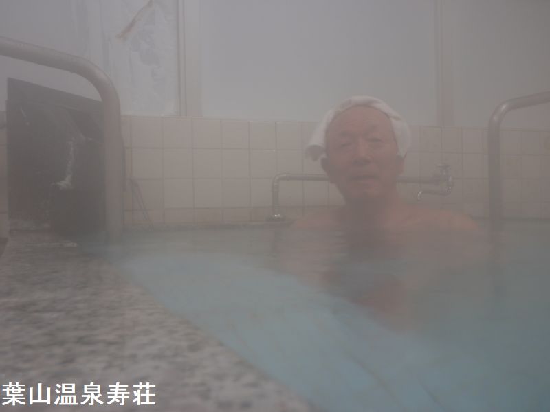 こちらの浴場は市の老人福祉施設に内包されており、一見するだけではここに共同浴場があるとは思えません。「寿荘」の建物は小高い丘の上に建てられているのですが、特にこの浴室がある箇所は丘の先端であるため、浴室の窓からは盆地に広がる市街地や蔵王方面の山々を一望することができました。葉山は他の共同浴場と離れているから、他の共同浴場とちょっと違うお湯に会えるかもしれないと思っていたので嬉しかったりします。受付のオジサンがたぶん熱いから水足していいよ、と言ってくれたのもあり、加水しながら浸かってみたのだが、熱いのは上の方だけだった。浴槽は深さがあるので下の方はそれほどでもなく。お風呂は長方形で広さは4人程度です。御影石の縁、浴槽内は水色のタイルが敷かれています。黒御影石の湯口周辺は白い析出で覆われていました。浴感はキシッとしていてキレがあります。硫酸のピリッとくる刺激あり、あっさりしていて、無色透明です。加水なし、消毒なし、循環なしの掛け流しで鮮度抜群で素晴らしい。