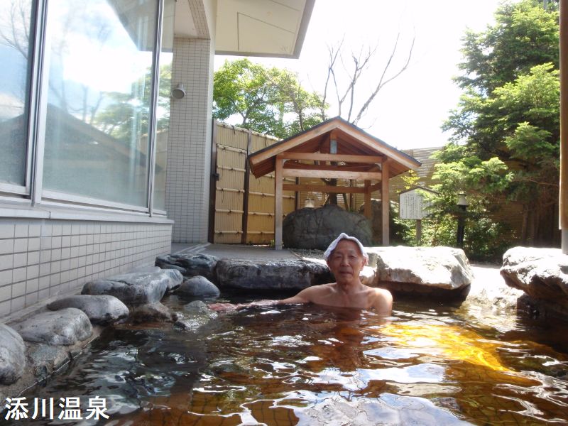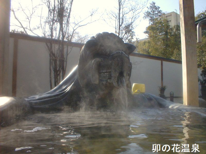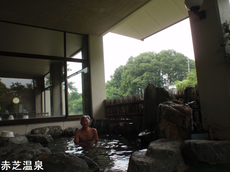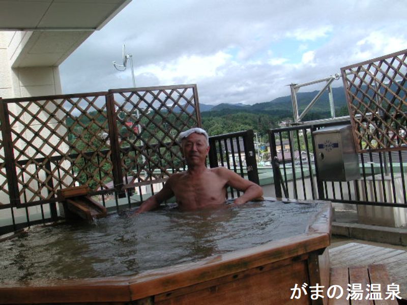ここは、2000年の11月にオープンした温泉で、敷地内に母体となる植杉造園さんがあります。もともとは、この造園会社が、消雪用の井戸を掘ったところ、地中350mから温泉が出てきたのが大本のきっかけです。その後地中1200mのもう1本源泉を掘削し、2013年、オープン記念日の11月15日から2本目の源泉も併用して利用しています。ガラス張りの明るい浴室には、大きな木枠の6人ほど入れる浴槽がどんとあります。湯口からそろそろ投入されるのは冷たい源泉です。源泉温度が低いので加温していますが、加熱湯は浴槽内のどこで注入されているのか分かりません。無色透明でかすかな塩味、特徴なしのさっぱり湯ですが、カルキ臭が最低限に押さえられているのが救いです。露天風呂は真新しい檜風呂で、3人位入れる小さめな浴槽です。低い生け垣があるだけなので、遠方の山々が見渡せ空が広く爽快です。