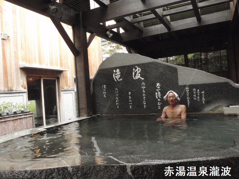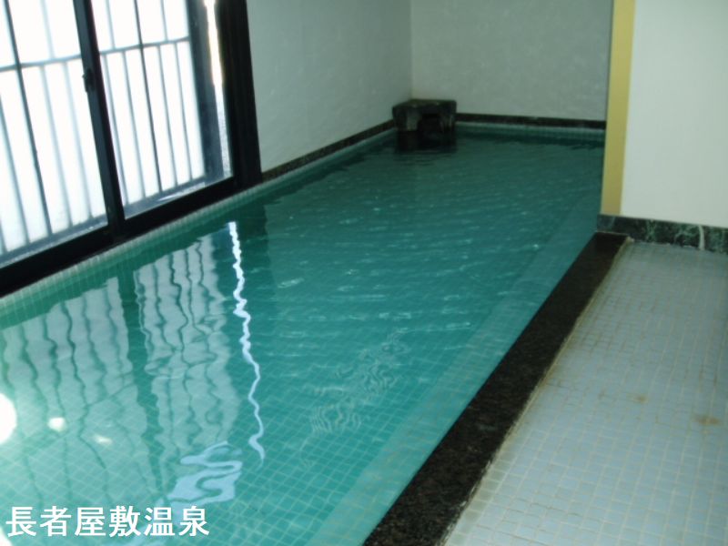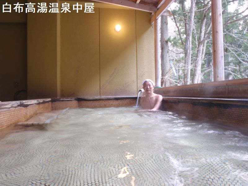 2000年まで、茅葺の旅館が3軒並んでいました。東屋・中屋・西屋の3軒です。しかし中屋から失火、東屋にも飛び火して両館が全焼し、残る茅葺は西屋だけとなってしまいました。300年以上も続いた中屋旅館の伝統を受け継ぎ近代的な設備を取り入れています。宿の名物はなんと言っても「オリンピック風呂」です。ひたすら横に長いお風呂でした。しかも何故か浴室入口が自動ドア。広い窓から日が差してキラキラで、とても綺麗だけど、なぜにこれがオリンピックかと言うと、1964年に開催された東京オリンピックに由来します。この年に大浴場がオープンしたのでオリンピック風呂と名付けられたそうです。長さは男女合わせて33mもあるそうです。窓からのの眺めも良く、大勢でずらっと並んで入れそうです。湯はきしつきが強く、白い溶き卵状の湯の花を漂わせています。湯の花の量は多く、浴槽の底に降り積もっているぐらいです。浴槽の底や床は信楽焼でできているそうで、タイルと違って独特の温かみある感触です。