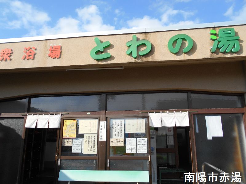 とわの湯は昭和18年に建てられた。名づけは町民からの募集で、この18という数字から18(とわ)となりました。なんとなく親しみを感じます。私の生年と同じ、それと南陽市出生ゆえかもしれません。丸い胴体の郵便ポストや電話ボックスがあり、レトロ感を増しています。建物はもちろん決して新しくはなく、町の公衆浴場らしくいい感じに年季が入っている。しかし、この「とわ」の湯周辺も全然温泉街らしくありません。本当に普通の住宅地の一角みたいです。とわの湯の周辺には温泉旅館も何軒かありますが、それでも景観は田舎の国道沿いそのままで、あまり観光地らしくありません。浴衣で散策とかしたら絶対浮きそうです。とわの湯の浴槽はきっちりと正方形です。少し鼻を突くような刺激臭のようなものを感じます。赤湯温泉のどこの共同浴場も、湯気が凄くて浴室内がミストサウナみたいになっていて、前がよく見えないし、時々ポタリと冷たい滴が落ちてきて思わずヤラレタと飛び上がりそうになります。お湯はわずかにうす濁りで、茶色の少し大きな湯の花が「ぽわっ」と、ところどころに漂っています。加水もあるものの掛け流しのお風呂は、浴槽の縁から円形のさざなみを作り贅沢に流れています。赤湯温泉の共同浴場の全てに共通しているのが、隅々まできっちり管理されていて、清潔で、とても気持ちよく入浴できる事です。