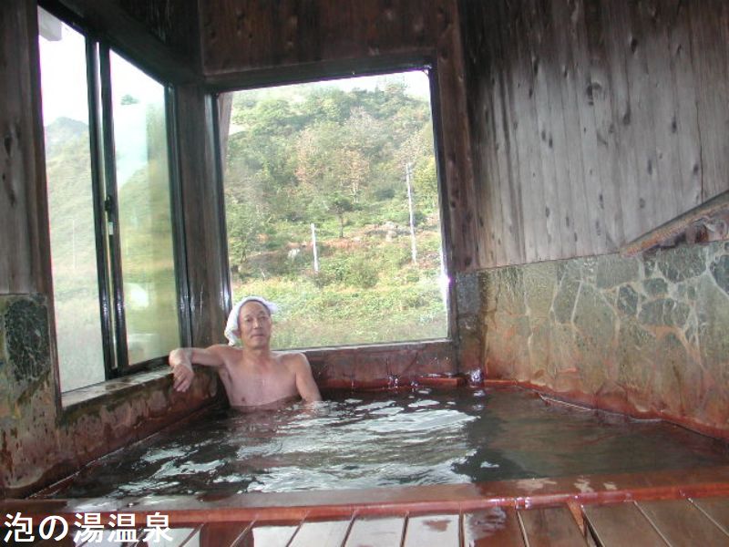 泡の湯温泉は山形県南西部の飯豊山の麓、小玉川支流の内川沿いに飯豊連峰・朝日連峰の大自然に抱かれた所にある一軒宿です。泡の湯の名の由来は、岩の割れ目から大量の炭酸ガスを含んだ泡が湯となって噴出することで名付けられました。山間の温泉だけに、渓流釣りや山歩きの人達に人気の宿です。源泉掛けながしの浴室に入りますと、桧の香りがしました。床も壁も桧張りなのです。2方向にある大きな窓からは飯豊の山々の四季の移り変わりがつぶさに診る事ができました。