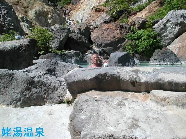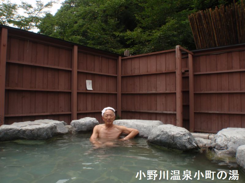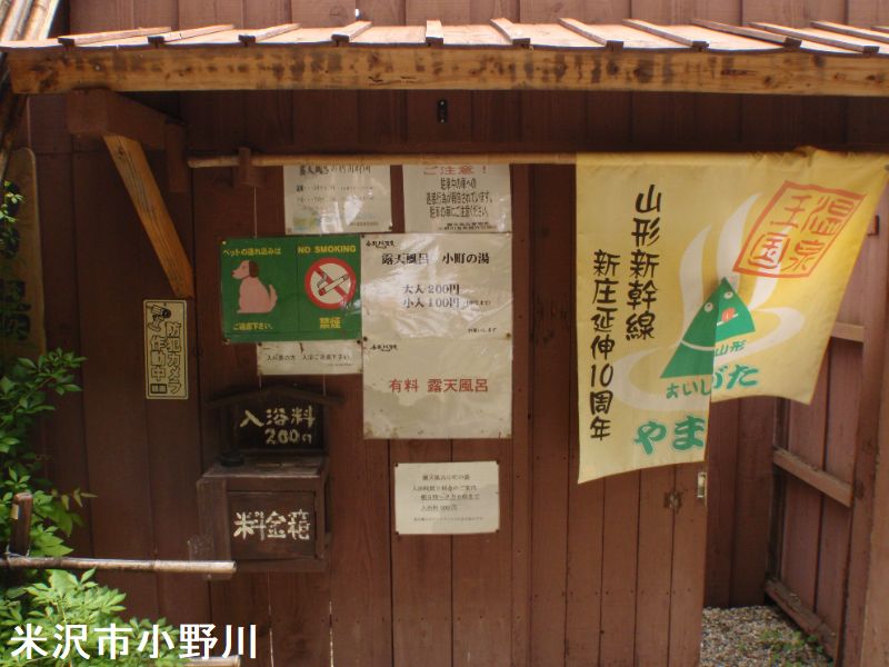 小野川温泉の名前の「小野」は、平安時代の歌人、日本の美人の象徴にも揚げられる、小野小町からきています。1200年前に小野小町が父を探し京都から東北に向かった途中で病に倒れ、この地の温泉につかって病を癒したと云う伝説が今も残っています。江戸時代には、伊達政宗がこよなく愛した温泉がここ小野川温泉です。「小町の湯」は、最上川の源流、大樽川の河畔に位置する石組みの露天風呂です。源泉温度がかなり高いせいで湯の表面には熱い湯がたまっているのでよくかきまぜてから入浴する必要があります。湯船へ注がれているお湯は4号源泉の単独使用です。何しろ無人施設ですから、湯加減を常時管理することができません。ほぼ無色透明なお湯の中では湯の華が無数に舞っています。また槽内の岩には湯の華が付着しており、このためお湯が白く霞んでいるようにも見えます。硫黄の香りが漂い、塩味の効いたおいしいタマゴスープの味が感じられます。