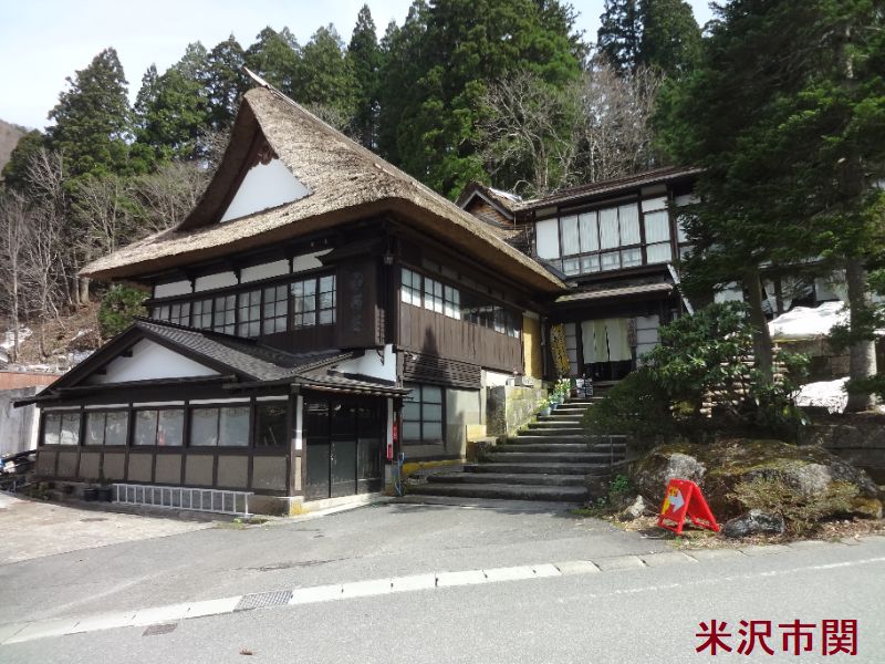 長者屋敷温泉のある山形県南陽市宮内には県指定文化財の「熊野大社」があります。その歴史は古く記録に残る最も古い記事は806年「平城天皇の勅命により、紀州熊野権現の御神霊をお遷し申し上げ再興した」とあります。伊達政宗(九代儀山)時代には門前町が、ぼつぼつ成立したと推測できます。まるで時代劇のセットを思わせる長者屋敷温泉は熊野大社の北東、秋葉山の中腹にある比較的新しい温泉施設です。泉質はアルカリ性の単純温泉で万人向けの温泉といえます。長者屋敷温泉の周辺はブドウやリンゴの果樹園に囲まれのどかで静かな環境です。ログハウス的な休憩所や全天候型「へら」池、蕉流湖がありのんびり釣りを楽しむ事も出来ます。