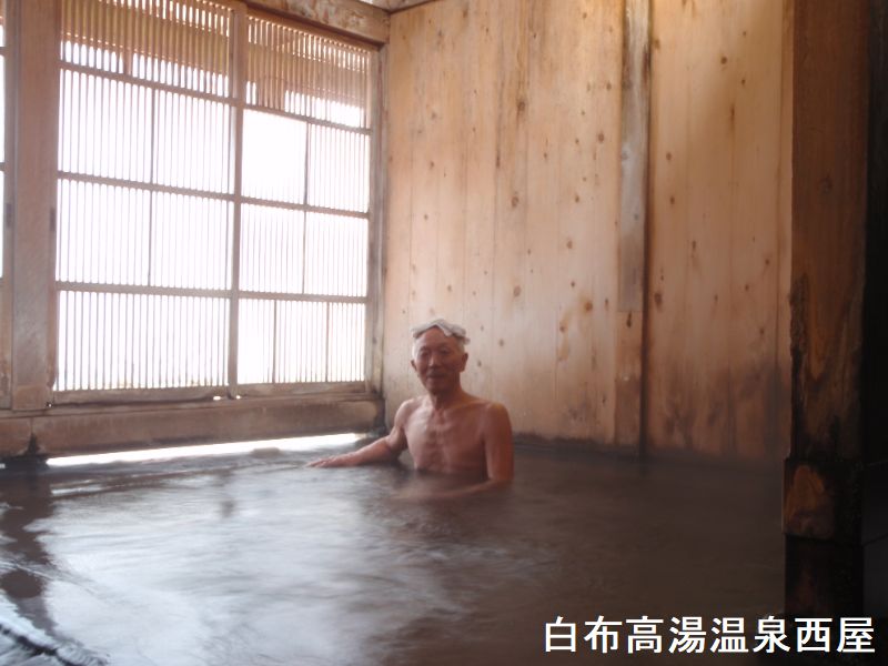 開湯700年と言われる白布温泉の、湯滝の宿「西屋」は、創業が江戸時代まで遡る歴史ある旅館です。江戸時代より「東屋」「中屋」「西屋」と3軒茅葺屋根の並ぶ情緒ある貴重な風景を見る事ができる温泉街でした。ところが2000年「東屋」「中屋」は火災にて全焼し、今も尚茅葺屋根を残すのは西屋のみとなってしまいました。当館祖先が明暦三年(1657年)に書き残した白布温泉に現存する最古の文書「先祖本書記」によりますと、江戸幕府開闢の頃、かの直江兼続公が秘密裏に戦の準備を進めるため、はるか堺州和泉(現在の大阪府)から呼び寄せた鍛治職人たちに白布温泉で鉄砲を作らせたとのこと。その際、上杉藩の命により、西屋の先祖は職人の寝食の世話を引き受けたと書かれております。この西屋の「湯滝の湯」は凄いの一言です。西屋に着いた時から「ザー」という音が旅館内の何処にいても聞こえてきます。近くに清流も流れていないしと思っていると、沢の水で温度調節された温泉の湯が三本の「打たせ湯」の滝として湯船に落ちている音だったのです。それが男湯も女湯でも、個室の温泉でも豪快な流しっぱなしなのです。天然噴出した高温の温泉が湯守りの努力によって温度調節されて流れ込んでいるのです。この豪快な湯滝に打たれるだけでこの温泉に来た値打ちがあります。