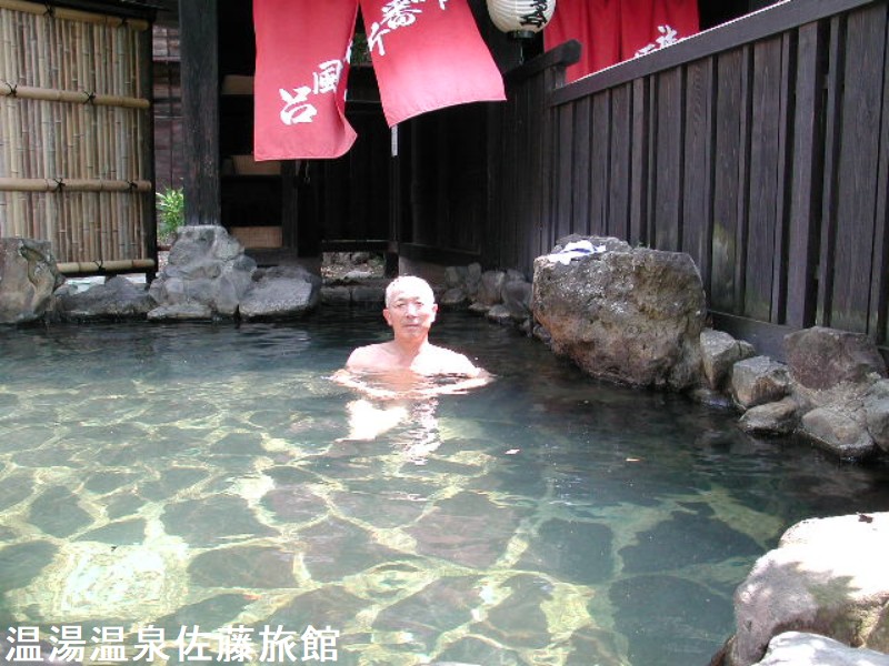 温湯温泉佐藤旅館は、仙台藩花山村寒湯御番所跡のすぐそばにあり、旧街道が宿の建物の中を通っていたためその雰囲気が残っています。黒光りする廊下や手摺り、外の風景が歪みをみせる鉛入りのガラスなどは貴重です。館内に入り口と脱衣場は別ですが混浴になっている大岩風呂があり、毎分併せて100立という「花の湯」「月の湯」「芳の湯」の混合泉が注がれています。館内の奥のドアから備え置きのサンダルに履き替えて本館建物から少し離れた庭にある露天風呂の御番所風呂が設置されています。一迫川の清流に向かって開けていて、折り重なるように連なる山々の眺めが素晴らしいです。