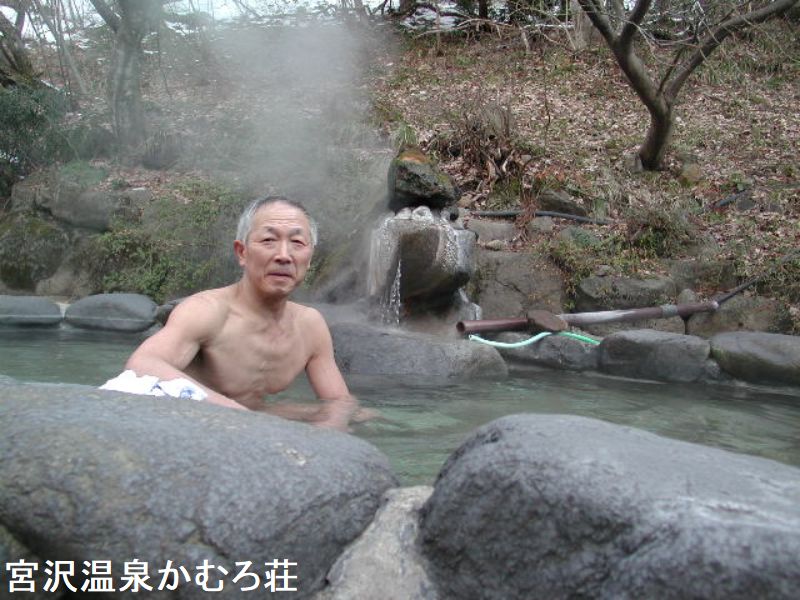 宮沢温泉は鬼首温泉郷にある4つの温泉の一つです。この地は間欠泉や地獄谷・片山地獄など至る所に熱湯が噴出しています。宮沢温泉の玄関の右手からも、もうもうと湯気が立ち上がっていました。玄関を入って先ず気が付くことは、骨董品店に入ったような、昔の主に木こりの道具が沢山陳列されていることです。明るく気さくな女将さんが親切に説明して下さいました。館内は表から見た目と違って奥行きがありかなり大きな施設です。そう新しくはないですが、良く管理されていて清潔感がありました。施設は山の斜面に有るために、露天風呂は二階に上がった所にあります。