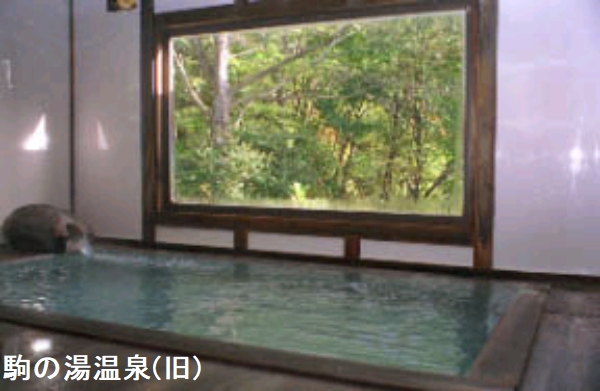 栗駒山は秋田・岩手・宮城県の県境に位置しその周りには多くの温泉が湧き出ています。湧出する湯量豊富な駒ノ湯温泉は高原から坂道を下っていった谷間にある鄙びた温泉宿です。今でもランプを使用している秘湯の雰囲気を味わえる有名な温泉です。宿は山中の谷間ながら、木をふんだんに使用して近年建物の一部をリニューアルしました。浴場はナラの木造で大型の窓からの眺めは自然の絵画を見ている雰囲気です。残念ながらこの施設(駒ノ湯)は、2008年6月の岩手・宮城内陸地震の再、土石流に飲み込まれ消滅してしまいました。