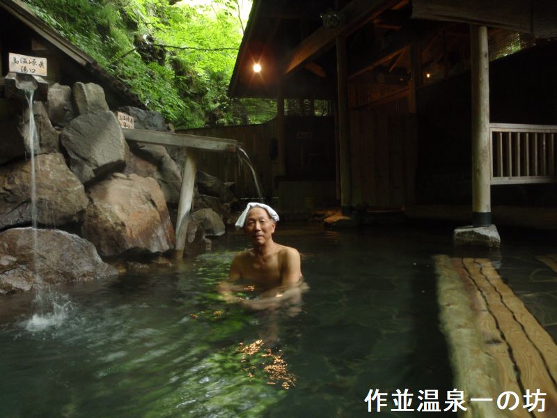 作並温泉は奈良時代に行基による発見とされ、鎌倉時代に源頼朝の奥州征伐時にも利用されたという事です。江戸・明治時代になると温泉利用が進み、昭和60年には年間60万人を超える利用者が訪れ「仙台の奥座敷」と呼ばれています。「グリーングリーン」は、広瀬川の上流に位置し17階建のホテルです。客室から四季折々の風景が一望出来ます。温泉は、幻想的な「大岩露天風呂」や、名湯に身をゆだねる「天空の湯」など多彩なお風呂があります。館内には2箇所の浴場があり、1つは地下2階(玄関を1階とした場合)の大浴場、もう1つは2階の露天風呂と内湯です。地下階の浴場はかなり広く、窓の外の眺めが良い感じです。眼下に広瀬川が流れ、目線の少し上に国道の橋が見えます。お湯は無色透明で無臭のさっぱりしたものです。浴槽には、熱いお湯と、ちょうど良い温度のお湯が注がれております。2階の浴場は、内湯は眺めるだけにして露天風呂に向かいました。お湯は温泉というより、プールっぽい匂いがし今一でした。温泉ガーデンのプールと同じお湯なのかも知れません。
