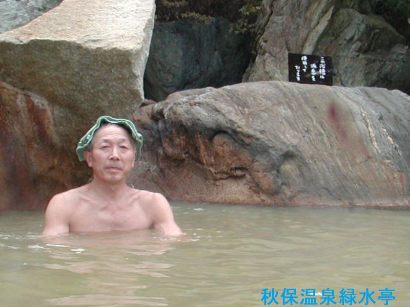 東鳴子温泉は宮城県の北に位置する全国的にも有名な 鳴子温泉郷にあり、昔から湯治や長期療養滞在にも適した温泉地です。いさぜん旅館は1941年の開業で、玄関前の長寿の松をくぐると長生きすると言われます。館内には、「鉄鉱泉」と「炭酸泉」が一緒になった浴室、「大浴場」、そして「中浴場」という3つのお風呂があります。混浴浴場は、2種類の自家源泉がかけ流され、浴槽ごとに源泉が違います。東鳴子の特徴であるアブラ臭の強い共同源泉と異なり、あっさり目の湯です。衝立を挟んで反対側のヒョウタン型の湯船は、「いさぜん」旅館自家源泉1・2号と似た傾向の湯です。湯の香りの濃厚さがやや違うので、違う湯なのだとわかります。浅い石造りの浴槽の古びた感じがいい雰囲気です。