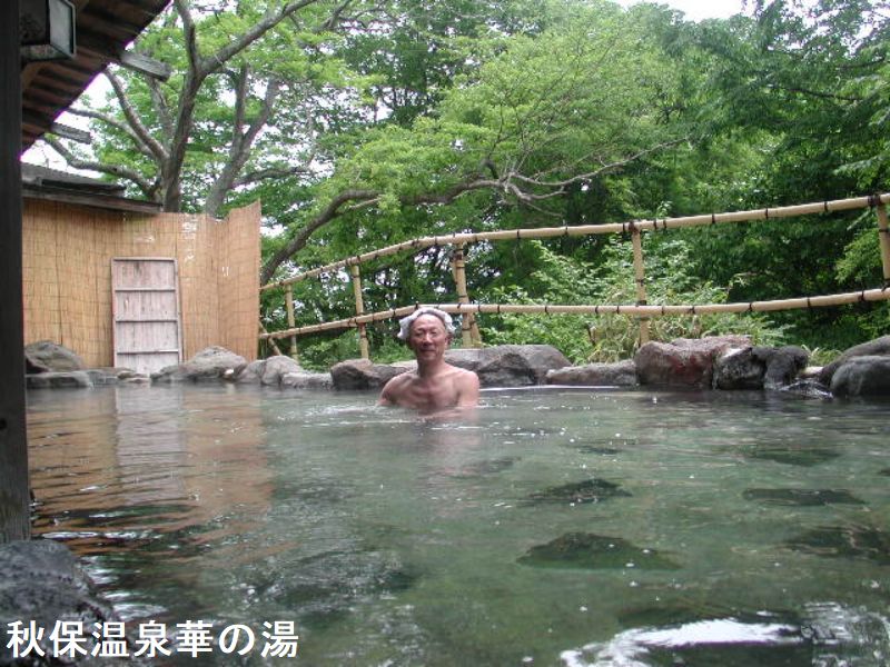 秋保温泉を代表する「華乃湯」は、多彩な湯殿が特徴で、敷地内には内湯・露天併せて計19カ所の湯殿が点在し、とても一日では入りきけません。ホテルに居ながら湯巡りが出来ます。渡り廊下を歩いて、建物から少し離れた所に露天風呂があります。大きな岩で造られた浴槽は、奇岩怪石が立ち並ぶ磊々峡に面しており眺めは抜群です。建物側三方は、板塀で囲まれていますが、前面は渓谷に向かって大きく開けています。新緑・紅葉・雪景色と、それぞれの季節に見せてくれる表情は美しく、そんな光景を眺めながらの入浴は目を潤してくれます。