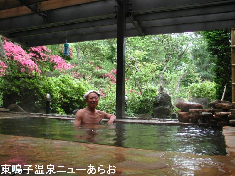 「ホテルニューあらお」は一寸大きな目立つ施設で全体的に広々としています。ここの名物は400年の時を越えて滾々と湧き出す名湯「御殿の湯」です。東鳴子温泉神社付近に、仙台藩や岩出山城主の遊楽地として御殿が造られました。遊湯したのは岩出山城主9代義監と、仙台藩主・伊達慶邦で特に楽山公は文久3年8月子供のいないのを憂い、夫人と共に赤湯に湯治し、宗基、邦宗の二子をもうけたことから記念の松を植えました。名付けて「手招きの松」と言いました。御殿の湯は、明治43年8月の水害で崩壊してしまいました。温泉は東鳴子特有の琥珀色したビニール系アブラ臭のするコーティング系ツルツルのお湯です。