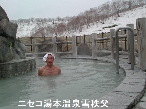 ニセコ湯本温泉は、ニセコ連峰の真ん中当たりに位置し、チセヌプリの南麓で五色温泉とほぼ同じ標高560mの高原に湧く温泉です。開湯はニセコ温泉郷の中でも古く、明治18年(1885)です。湯元は、絶えず熱湯がもうもうと湯煙を上げている近くの「大湯沼」でその様子は壮観です。いかにも山の湯らしい自然湧出の硫黄泉で湯量にも恵まれています。国民宿舎「雪秩父」は、ニセコセヌプリスキー場の麓に建つ露天風呂が自慢の施設です。ここの硫黄泉は湯の花が多いのも特色です。「美白」効果が期待される硫黄を含んだこの湯の花泥パックが好評です。但し泥パックが出来るのは5月~10月だそうです。