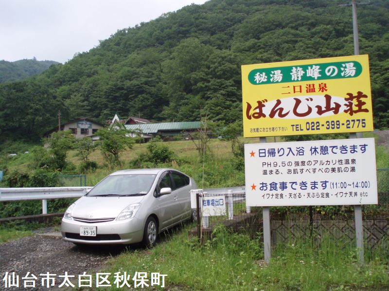 自然に囲まれた一軒宿で、強度のアルカリ性-の自家源泉が自慢のばんじ山荘は、宮城県の秋保温泉に近い山間にある一軒宿です。近くには秋保大滝や二口渓谷、磐司岩など名所が多く、また大東岳や三方倉山など登山に適した山々が沢山あります。大自然そのままの「ばんじ」山荘は、美味しい水と澄んだ空気、そして最高のお風呂があります。お湯は自家源泉で、とろりと肌に優しく湯量も豊富です。