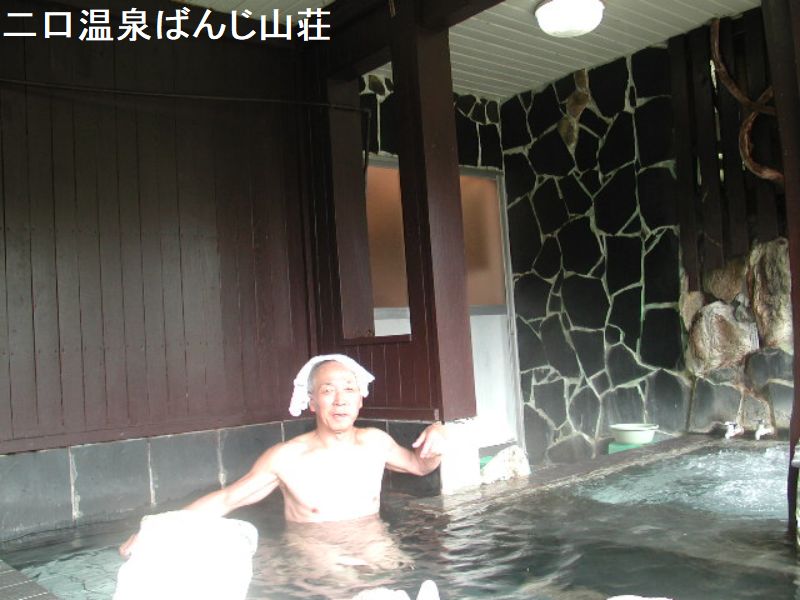 秋保温泉の奥、ホテル佐勘の先にある公共系の温泉宿です。政府管掌健康保健保養所であった「ホールサムインばんじ」は、JCHOが実施した入札で株式会社ビルワークが落札し運営しています。大型旅館が多い秋保温泉にあって、小規模旅館好きにとって有難い存在です。元は公共の宿だったので、ちょっと色気は足りませんが、しっかりとした建物です。浴室はタイル張りのわりとオーソドックスなスタイルですが、窓が大きくて非常に明るい印象です。ガラス窓際に浴槽がありますが、浴槽は大小2つに区切られています。小さい方は気泡浴になっていて、大きい方はジェットバスが2基ついています。湯は無色透明で、ツルッとした浴感が楽しめるアルカリ性の温泉です。窓からは見ごろを迎えた色づいた山々が見え、景観を楽しむことができました。浴室の一角には露天風呂に出る扉があります。扉を開けるとそこから真下へと下りる螺旋階段があります。けっこうキツイ階段で、階段をおりると目の前に岩風呂になった露天があります。露天といっても立地柄、壁も天井もあるのですが、冷たい山の風が流れ込んでとても清々しい感じです。また岩風呂もゴツゴツとしたワイルドな雰囲気があり、また外側は崖になっていて眼下には川が流れているのが見えます。小規模な露天ながらもとても雰囲気が良くて気に入りました。