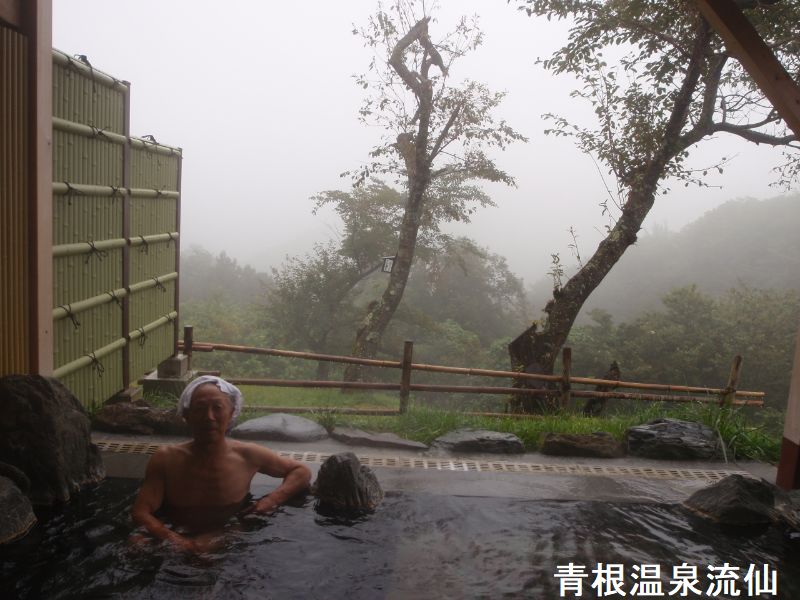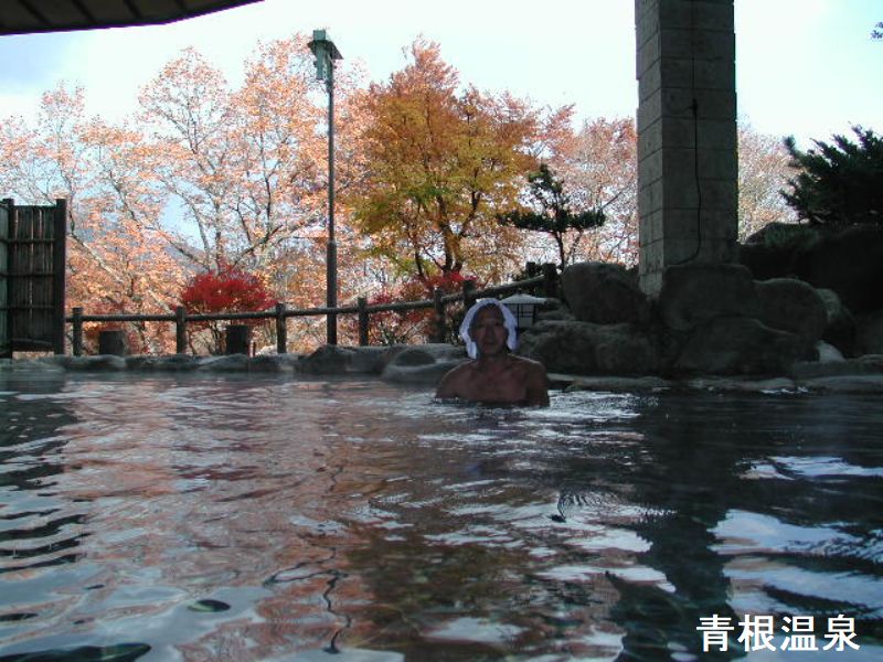 青根温泉は、伊達藩の保養所として1528年に開湯して以来460年余りの歴史を誇っている名湯です。さらに、かの有名な作曲家古賀政男氏の名曲「影を慕いて」は、失意の中で青根の雑木林をさまよっているうちに生まれたとい云うエビソートもあり、現在その雑木林に古賀政男の歌碑が建っています。ほどよい熱さの透き通った湯が、たっぷり流れる露天風呂。眼前の豊かな山塊に目をやれば、心までほぐれるような心地よさです。ここの露天風呂から見える山谷が重なって行く、広大な景色を見下ろすことが出来る景色は抜群です。