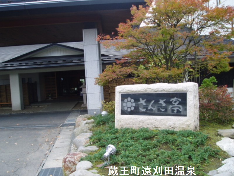 山形県と宮城県の県境にそびえる蔵王連山、山形県側の麓には蔵王温泉や上山温泉など有名な温泉があります。その反対側である宮城県側の麓に有るのが遠刈田温泉です。遠刈田温泉は今から800年ほど前、牛若丸(源義経)を奥州平泉に導いた金売橘次が金の採掘をしていて発見されたと伝えられています。開湯したのが1601年、昔は蔵王権現への登拝のための湯治宿として栄えててました。さんさ亭は雄大な蔵王の大自然に抱かれた標高330mの高原にある温泉旅館です。解放感溢れる露天風呂付大浴場と旬の素材を生かした料理が自慢です。ここは、まるで故郷に帰ってきたような不思議な懐かしさを覚えます。耳を澄ませると野鳥の声も聞こえます。