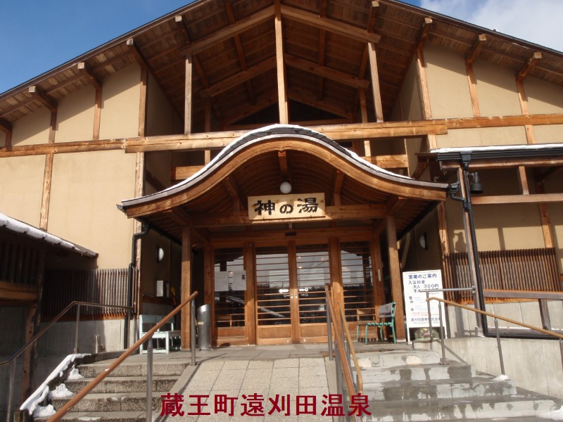 かつては湯刈田という文字が当てられていた遠刈田温泉は、蔵王連峰を西に望む標高330mのなだらかな高原にあり、松川河畔沿いの開けた一帯に20軒ほどの旅館が点在する静かで明るい温泉地です。神の湯は、元々温泉センターと呼ばれていた共同浴場でしたが、近年立て替えられで名称も変更されました。神の湯という名前の由来は、恐らく背後に遠刈田神社が鎮座しているためでしょう。温泉街のど真ん中、両側に道路が走る広場の中心に建てられていて迷うことなくここにたどり着けます。浴槽は2つに仕切られ「あつい湯」と「ぬるい湯」に分けられています。