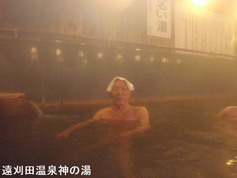 遠刈田温泉の温泉街中心部で軒を連ねているお宿や浴場には、7号泉という赤茶色に濁った源泉が引かれている場合が多くあるのですが、ちょっと離れると別の源泉を使っているお宿もあります。温泉街の南を流れる松川を渡って、烏帽子岳の麓に「トスネット元気荘」があります。この施設は、仙台市に本社を置く警備会社で、「トスネット元気荘」はその会社の保養施設なのですが、一般の外来客も日帰り入浴や食堂を利用することができるんです。温泉は、男女別の内湯に露天風呂が1つずつあり,それぞれに茶褐色透明のお湯が注がれています。内湯は適温で,その内湯から溢れたお湯が露天風呂に注がれる仕組みになっています。露天風呂はかなり温めで、岩で組まれた湯口から桧系のアブラ臭が香る茶褐色のお湯が注がれていて,茶色い湯花も多数舞っています。単純泉ながら心地よいもので,長時間浸かっていても疲れがこないお湯でした。