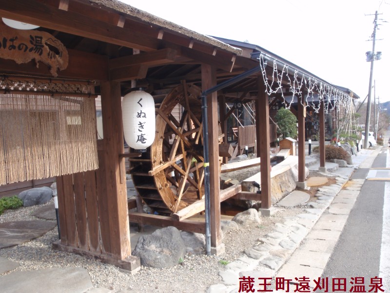 その昔、京都の公卿三条盛実の姫おまんの方は、夢のお告げによって奥州に下り、遠刈田の山中で炭焼きをしていた藤太という者の妻となった。藤太は炭焼きを続けるうち、岩崎山金山(現在の籠山)を発見し大長者となる。夫婦は三子をもうけ、長男の橘次が家業を継いで発掘した金を売る。これが金売り橘次である。橘次は、岩崎山金山を発掘中、霊泉を発見した。勿論これは伝説であり、岩崎山金山の発掘は慶長年間であるといわれていますから、温泉の発見も徳川の初期であろうと思われます。刈田郡史によりますと、「この湯、初め蒲生氏郷に仕えていた大沼某の四世の孫、勘十郎という者がこの地に移住し、荒地を開拓し慶長6年9月に温泉を発見した。その後元文5年3月にも新たに発見された」とあります。この一帯は、白石城主片倉家の所領となっていたため、白石家中は湯銭を免除さ れたという記録もあります。メインストリートの東の端に共同浴場「壽の湯」があります。特徴的な湯屋の建物です。1993年に建てられてまだ新しい施設です。