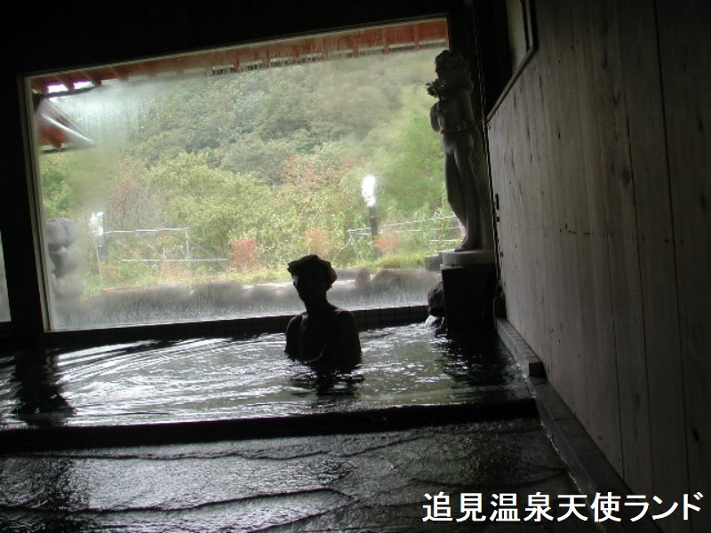 追見温泉は宮城県南西部の七が宿町のダム湖の南側にある、子供向けのレジャー施設の中にある温泉です。天使の温泉は、深さ980mの地下から毎分180ℓ(一分間に約ドラム缶1本分)の弱アルカリ性の温泉が供給されてます。源泉は飲料にも適していて、うすい甘味があり水の粒子が通常の水の一万分の一と小さい為、舌や肌がつるつるして子供や女性に適しています。温泉は温めでクロレラが含まれ長時間の入浴に適しています。