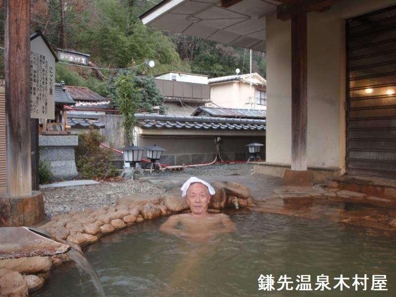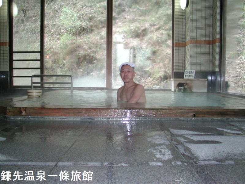 鎌倉温泉は、鎌倉権五郎景政が、夢の中で女神から教えられ、傷を治したと言う伝説の秘湯です。ウグイスやカッコーの鳴く静かな山の中の一軒宿で、心と体をリフレッシュするいやし系温泉です。夏には、近くにある栗の木でカブトムシとクワガタムシが対決し、夜は、ホタルが舞う温泉です。目の前の山には、ニホンカモシカの親子が、のんびりと散歩に訪れます。浴室は、3~4名詰めて5名程が入れる浴槽があり、大きな窓から外を眺められます。お湯は無色透明無臭で、強アルカリ性ですが、殆ど「ぬめり」は感じず、ただ肌はツルツルした感じになります。古くから皮膚に良いお湯として知られており、「あきらめていたアトピーが治った・肌荒れ、水虫、あせも等が治った」など肌に効くお湯として評判らしいです。源泉が低い冷泉の為、薪を燃やして加温し湯船に注がれます。湯船のお湯は熱めで、寒い今時期でもすぐに体が温まります。熱すぎる方は、浴場内のホースで水を足します。冷泉を薪で燃やして加温し、湯船に源泉100%のお湯が投入されます。循環、消毒有りですが、消毒の匂いはありません。のんびりここでくつろぎながら、羽を伸ばす湯治も良いかもしれません。