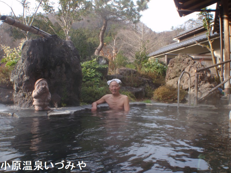 宮城県最南端に位置して福島県と境を接し、市域の西南から北東に向けて阿武隈川の支流白石川が流れています。白石市の市街から西へ10km弱、急に道が上り坂となり、一挙に深山幽谷の気配が濃くなってきた先に小原温が現れます。源義経の臣常陸坊海尊が発見したと伝えられる小原温泉の「いづみや」は、この小原温泉で400年の歴史と伝統を誇ります。自慢の温泉は一度に100人も入浴できる東北屈指の大浴場です。広いガラス窓のおかげで渓流の陽光が降り注ぐ浴室は、窓の下には大きな浴槽が据えられています。広い湯船で熱が放出されるのか、湯船の温度は体感で42℃ほどでした。湯口周りには白い析出が現れていますが、実際に口にしてみますとほぼ無味無臭でして、味や匂いのみならず浴感も、癖が少なくて優しいお湯でした。露天風呂は、山の緑に囲まれながら白石川の渓流を眺める爽快なロケーションに、4人サイズの岩風呂が設けられています。
