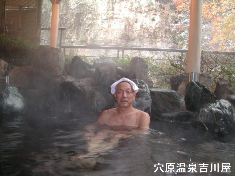 幕川温泉吉倉屋旅館は、土湯峠付近の旧115号線から脇道を谷間に下って行き、4km程走ると車道が行き止まりになっています。周囲を静かなブナ林に囲まれた好環境にある幕川温泉の2軒の宿のひとつです。山中ながら建物は鉄骨木造二階建てで立派てす。庭の池にはヤマメやイワナが沢山飼われていました。玄関の右手に進んだ先に岩造りの露天風呂があります。脱衣場から少し下がった位置にとても清潔感のある露天風呂がありました。目の前に豊富な木々の緑を見ながら湯に浸っていると疲れがすーっと抜けていきます。ここは真夏でも涼やかな風が吹く別天地です。温泉好きな山ちゃんが、真夏の露天風呂で一番悩まされるのはアブの襲来ですが、ここではその心配は有りませんでした。岩造りの野趣あふれるゆったりとした大きさの露天風呂でした。