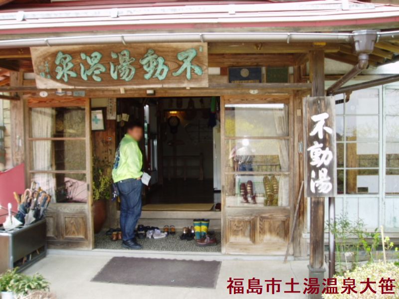 不動湯温泉は、大地の炎・自然の恵みを得て万病を退けるために、不動明王の霊名を冠した秘湯です。土湯温泉からさらに山深く入り、うっそうとした原生林に埋もれるように立っている一軒宿です宿の建物は木造2階建の古い山荘風でした。山中といっても谷間が開けているのでとても明るいです。駐車場から坂を下って行きますと宿の玄関に至ります。宿の下にある不動沢に160段近く下る長命階段の降り口に混浴内湯が有りました。湯船も洗い場も鉄平石の「常磐の湯」があって単純炭酸鉄泉が湧いています。谷底にある「谷間の露天風呂」(混浴)は、深い山懐に抱かれた野趣豊かな秘湯ですね!白濁した硫黄泉でした。但し湯船が少し小さいです。定員2名!隣の更衣小屋で待っている人もおりました。