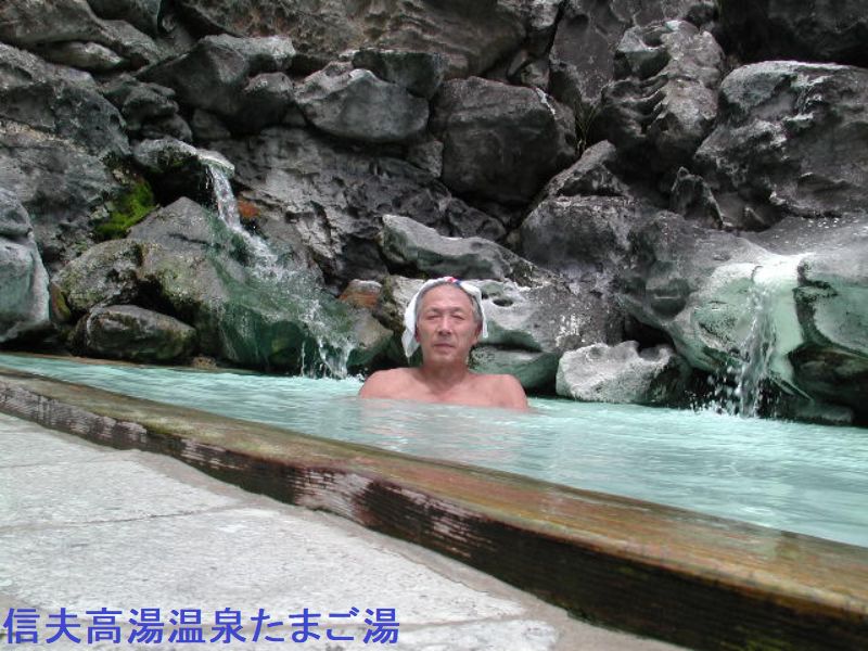 江戸時代の慶長の頃、山麓の二子塚に住む宍戸五右エ門という狩人が山に入り、もうもうと立ちこめる湯煙を見てさらに登り、沢辺に真白に湯ノ花が付いているのを発見しました。それが信夫高湯温泉の始まりと言われています。この硫黄泉に入ると肌が玉子のように滑らかになることと、温泉の臭いがゆで卵に似ていることで玉子湯と名付けられました。旅館玉子湯の庭園は広大な土地に自然石をそのままに、よく手入れが行き届き心に癒しを感じさせます。昔ながらの趣のある茅葺きの外湯は明治時代に建てられた小屋そのままだそうです。ここの霊泉は長い間放流されていましたが、明治元年に庭坂村の後藤興次兵衛が難病で悩む人々のために仮小屋を造って湯用に供しました。これが玉子湯の開業の第一歩であり、以来温度・泉質とも変わることなく現在に至っています。露天風呂は最高です。野天岩風呂は、写真を見て頂ければ特に説明はいりませんね!「天渓の湯」では湯温の違う源泉が2つ注ぎこんでいて、ちょうど良い湯加減になっています。渓流沿いの眺めも素晴らしいです。