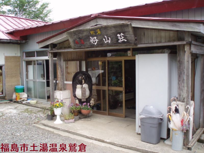 土湯の温泉街の奥にある静かな温泉宿です。土産物屋が軒を連ねる温泉町から1kmほど荒川に沿って溯ると緑一色の山肌を前と後にした川べりに、川上温泉の一軒宿がひそんでいます。僅かの道のりを奥に入っただけで、別世界のような自然のど真ん中の環境になります。宿は木造の二階建てで、かなり古いものですが、安らぎというのは木造りがつくり出すものだということが感じられます。内風呂はプールのように大きいですが、山肌をえぐり抜いて自然石の巨岩を上手に利用した露天風呂の野趣味が何とも言えません。ご主人の阿部さんは、ここは水の量より湯量がめっぽう多く、湯加減に苦労していると笑っていました。この地は昔から温泉宿がありましたが、。昔の温泉は明治21年の磐梯山噴火により地底に眠ってしまいました。磐梯山の登山口であり、源氏ボタルの群棲地として有名な地域です。