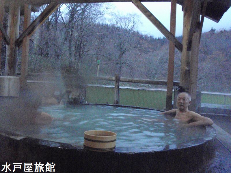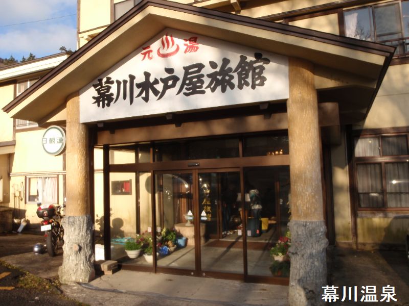 福島から猪苗代に向かう土湯峠越えの道には鄙びた温泉が多いです。幕川温泉は吾妻連峰の稜線近くにある高地の温泉です。幕川温泉への林道の入り口は、磐梯吾妻スカイラインの土湯峠口から旧国道を少し下ったところにあります。幕川温泉には2軒の温泉旅館があり、その1軒が水戸屋旅館です。水戸屋はかなり大きな旅館です。1階に浴室と露天風呂があります。2階には巨大な桧の切り株を使った混浴露天風呂があります。建物から離れて渓流沿いにも混浴の露天風呂があります。1階の浴室は白濁の湯と透明な湯の2種類です。湯はほぼ透明で、白く大きい湯の花が漂っています。露天風呂は白い湯です。色はかなり濃く湯は掛け流しで、腰くらいの高さの塀があるので露天風呂からの眺めは今一です。2階に巨大な桧の展望露天風呂があります。建物の裏手の源泉の近くに野天風呂があります。お湯は白濁していて、やや温めなのでのんびりできます。