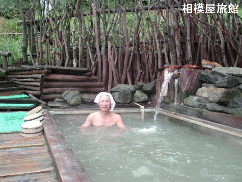 土湯温泉郷の奥へと進む土湯峠には、見逃せない秘湯の宿が点在しています。その中の一軒、相模屋旅館の建物は近代風、湯船は温泉ファンの心をとらえる昔の造りです。相模屋旅館は土湯温泉郷にある胃腸の名湯として知られている宿です。標高1200mの高所で北側に開けているため福島市街地も見え、夜景が特に印象的です。宿の前を走る県道はかっての国道115号線で温泉を目的でやってくる人が多いです。玄関を入ると右手に別館となる鉄筋四階建ての建物があります。渡り廊下の先には前からあるという素朴な桧の内風呂と野天風呂があり、湯煙がたなびく先に、鬼面山の山肌を眺め湯治場の風情を醸しています。その野天風呂は広い荒野に木の道が設置されていて右手上に女性専用、左手下に男性用の野趣豊かな露天風呂です。湯は豊富に掛け流しされており、入浴満足感抜群です。
