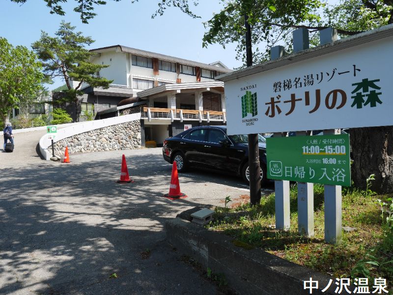 中ノ沢温泉は、沼尻温泉が山中にあった時代に、湯治客の利便性を考慮し、さまざまな困難を克服し引湯された温泉です。。沼尻温泉と同じ源泉を利用し、元の単一の湧出口からの湧出量は日本一といわれています。猪苗代町内に数ある温泉の中でもっとも日本人の温泉街、湯の町のイメージ近いのがここ中ノ沢温泉です。沼尻鉱山が全盛の頃から湯治湯として栄え、軽便鉄道が多く湯治客を運んでいました。温泉街の両側にホテル旅館やおみやげ屋が立ち並び、今も長期滞在客が多いのが特長です。「磐梯名湯リゾート ボナリの森」は、旧磐梯高原リゾート・イン「ぼなり」が 生まれ変わった湯宿です。露天風呂は、古くから胃腸に効く湯として有名だった中の沢温泉を楽しめます。大浴場は大きなガラス張りの開放的な浴室で、四季を通じた自然の景観が広がっています。