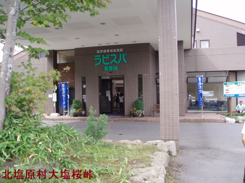 裏磐梯から道幅が広い快適な道路を大塩裏磐梯温泉方向へ走って行くと、道沿いの小高い丘の上に、プールも兼ね備えた大きな温泉健康増進施設があります。「ラビスパ裏磐梯」は、山々に囲まれた四季折々の景色が楽しめる自然豊かな場所にあります。裏磐梯は、東北地方福島県北部にある磐梯山、安達太良山・吾妻山に囲まれた標高約800mにあります。明治21年(1888年)に相図磐梯山が噴火して生まれたのが磐梯高原です。磐梯朝日国立公園に指定されている裏磐梯は、夏は涼しく冬は雪が沢山降り季節ごとに魅力がたくさんあります。