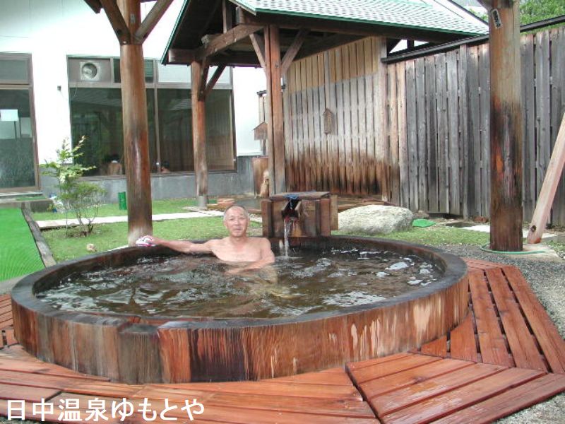 福島県と山形県米沢市を結ぶ国道121号線、昔は大峠越えや押切川の水害などで難所とされていましたが県境に日中ダムが完成し、レインボーラインも開通した現在は快適なドライブコースになっています。「ゆもとや」は、その日中ダムを目の前にした広大な草原に建つ、ヒメユリ咲く山峡の秘湯の一軒宿です。開湯の歴史は古く、江戸時代末期にさかのぼります。泉温は40℃とややぬるめですが、ゆっくり浸かれば身体の芯から温まります。露天風呂は木の香ただよう総檜造りで、熱めの湯と温めの湯2種類あり、火照った体を草原の爽やかな風で冷ましながらの入浴は心和みます。
