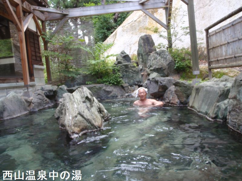 福島県の会津地方は静かで良い温泉が多いです。会津若松の西、柳津町にある西山温泉も静かな温泉地です。西山温泉の古い旅館街から離れて町営温泉施設の「せいざん荘」があります。西山温泉の集落から坂を登って、高台に近代的な施設が突然現れます。周囲は人家もなく低い山が連なっているだけの山の中にまだ新しい施設が現れます。茅葺き屋根をモチーフにした大きな屋根で、博物館を連想させるような建物です。館内は広々として清潔です。中庭には融雪用の池があって雪が多い土地だということが分かります。建物の西側に谷を見下ろす向きに浴室があります。浴室は広いガラス窓があって、濃い山の緑を見渡たす事ができます。お湯は透明でさらりとした感じです。お湯をなめてみるとごく薄い塩味がしました。かすかに油臭もあります。露天風呂は2段になっていて、大きな岩を組んだ岩風呂です。やや温めなので、長湯をしながら山の景色を楽しめます。