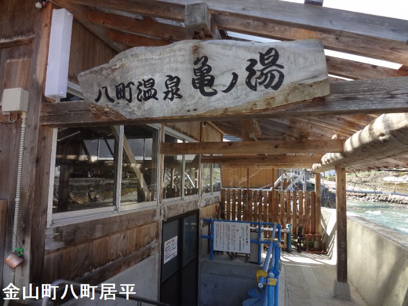 会津川口より国道400号を昭和方向に向かい約5km、左側のヘアーサロンめぐろの先を川に向かって下ったところに風情ある湯小屋があります。混浴の共同湯が八町温泉共同浴場「亀の湯」です。脱衣所は別ですが、浴槽は混浴で7~8人が入れる長細いもの、湯船が外観同様ひなびた雰囲気でどこか懐かしい雰囲気です。源泉が2つあり細いほうの湯が胃腸に良いといわれています。浴槽は、床や浴槽など温泉に触れる部分は万遍なく赤茶けています。また浴槽の縁や排湯の流路はカルシウムの付着によってデコボコしています。お湯は、人が入れば浴槽全体から溢れ出しますが、常時の排湯は切り欠けから流下しています。、浴槽にお湯を注いでいる2本の湯口のうち、投入量の多い右側は野尻川対岸の玉梨温泉から引いているものであり、左側のポンプから吐出されているのはこの浴場オリジナルである八町温泉亀の湯源泉です。亀の湯だけですと温度がややぬるくて量も足りないため、湯量豊富で温度も高い玉梨温泉からお湯を引いて並行利用しているわけで、両源泉とも似たような質感を有するお湯なのですが、お湯のフィーリングとしては亀の湯源泉の方がより個性的であるような気がします。赤みを帯びた貝汁濁りの湯中では赤い細かな湯の華がたくさん浮遊していました。2つの源泉のブレンド具合が実に絶妙であるため、加水せずとも実に心地よい湯加減が保たれています。