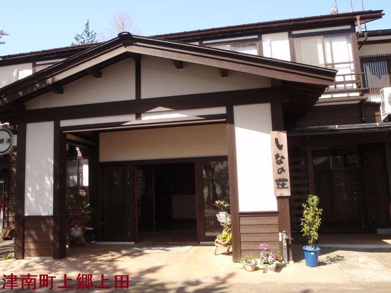 新潟県の最南端(津南でも長野県に近い側)、マウンテンパークに向かう橋を渡ったすぐの所の、信濃川河畔の静かで小さな隠れ家的旅館です。新潟にも数ある温泉の中で通のお客様にも喜ばれる自慢の泉質です。家庭的で気取らない、のんびりできる温泉旅館です。温泉は掛け流しで春夏秋冬 ロケーションがすてきです。しなの荘のお風呂は、自家源泉100%で、源泉かけ流しの、しっとりとスベスベお肌に優しい茶褐色の温泉です。(源泉は35.8℃。少々低いので、沸かしています。)つるつる美人の湯として、地元津南の方々にも親しまれています。内湯の浴室の中に露天を付けてありました。従ってしっかりした屋根のある外湯で、景色も池と庭園も見え露天の気分が味わえます。