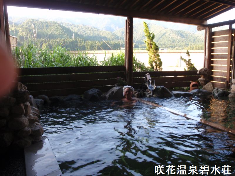 上杉謙信が三国峠越えするために通った道は三国街道と呼ばれ、現在の国道17号線にもこの名が冠せられています。この峠は、戦国時代、上杉謙信が関東平定のため、27年間で14回も越えています。貝掛温泉は標高800mの自然豊かな谷間にあり、開湯は約700年前と言われ、土地柄だろうが上杉謙信の隠し湯と称されています。温泉は、江戸時代から眼病に効くと言われ、昭和初期までは目薬として発売されていたそうです。白壁に黒木の格子が入った瀟洒な外観、内部も木材をふんだんに使い、どこもよく磨かれて、かつての豪農の家を感じさせます。男女別の大浴場で、それぞれに「露天風呂」と内湯に「加温浴槽」「非加温浴槽」があります。非加温浴槽は37度、加温浴槽は42度ぐらいになっており、2つを行ったり来たりすると本当にいつまででも入っていられます。非加温浴槽には湯枕も置いてあり、みなリラックスしてお湯に浮かんでいる感じです。また、湯小屋の雰囲気も大変良いです。秘湯っぽさは残しつつ清潔感はありますし、露天風呂は、片方の大浴場は大きく、やはり加温されている露天風呂と、加温されていない露天風呂があるのですが、片方の大浴場には加温の露天風呂1つしかありません。