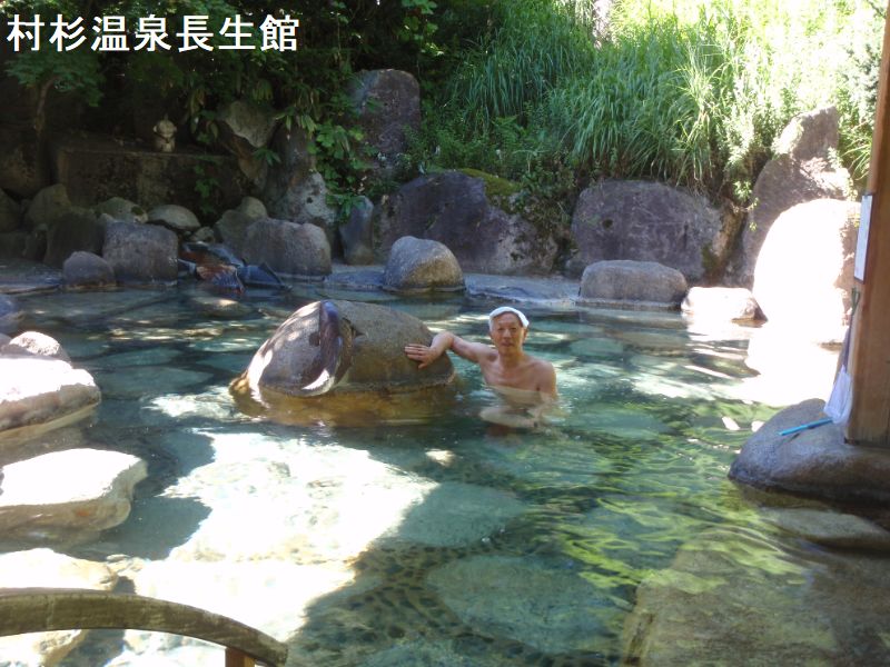 村杉温泉は、建武2年(1335年)足利家の武将であった荒木正高が戦乱を逃れてこの地に着き、 薬師如来のお告げにより温泉を発見したと言い伝えられております。前述の約700年前に温泉が出たということから、現在の温泉街のほうへ移住し、以降国有地払い下げを受けたりしながら各自の土地を確保し、村杉温泉の原型が形作られ現在に至っております。また薬師堂があり、源泉があり、外湯がある型は歴史ある温泉の原型と言われています。長生館の浴室は、ぬるめが自慢の温泉ですが、この日は湯温が高めで、無色透明無味無臭の湯は一見すると特徴がありませんが、肌に柔らかで、しっとりと包み込まれるような感じを受けます。露天風呂は、名物のトンネルを抜けると、広大な空間が広がり、大きな露天風呂があります。手前の小浴槽は、非加熱源泉が掛け流しされています。大浴槽の湯も内湯と同様に、やや熱めで、温まりは良かったです。源泉は自噴しており、ポンプで貯湯タンクに汲み上げて、源泉を加圧ポンプで道路埋設配管を通して長生館まで供給されています。供給量は毎分20ℓとの事です。源泉温度は25.2℃と低温ですので、当然ながら加温され、循環ろ過装置を使用し、塩素系薬剤による消毒が行われています。