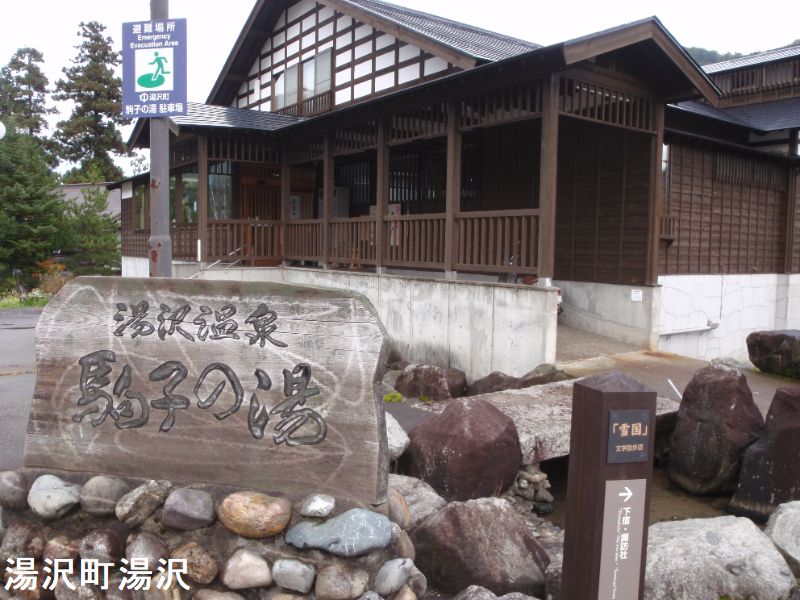 川端康成の小説「雪国」「国境の長いトンネルを抜けると雪国であった」のヒロイン駒子にちなんで名前が付けられました。とても風情のある温泉です。民家風に造られた建物はまだ新しく小さいながらも清潔です。残念ながら露天風呂はありませんが、内湯は広い湯船です。お湯は単純温泉なので澄んでいて、ちょっと熱めにしてあります。スキー帰りに汗を流すのにちょうど良いかもしれません。広い窓からは雪に覆われた越後の山々が見えます。浴室は、15人ほど入れる湯船と仕切りが付いた洗い場がある人気の浴場です。館内には「雪国」展示コーナーもあり、小さいながら休憩室用の広間もあります。小さめながら休憩コーナーもあって湯上がりに一休みできる。展示コーナーには映画「雪国」の写真パネルがありました。駒子役は岸恵子、島村役は池部良でした。