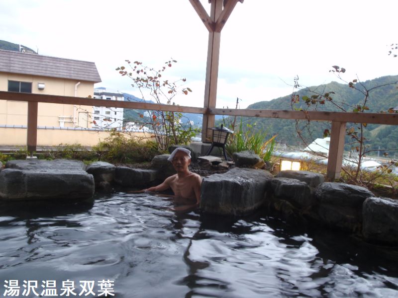 秋山郷は平家落人の隠れ住んだ里、その中にある逆巻温泉の一軒宿川津屋は、吉川英治が「新平家物語の構想を練り、執筆した宿として知られています。国道405号線から宿の看板を右折、信濃川の支流・中津川に掛かる猿飛橋を渡って山道に進むと中津渓谷を見下ろす断崖に建つ宿に到着します。創業は江戸末期か明治初年といわれていますが、建物は平成12年リニューアルされました。興味をそそるのは、岩山を刳り抜いた不思議な造りのお風呂「めいそうの湯」温泉は、風呂の奥から自噴しています。肌触りが優しいお湯はラジウムを含み心身の疲労回復に効果があります。