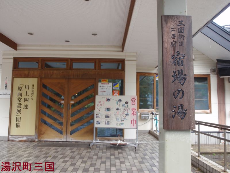 三国峠によって隔てられる新潟県と群馬県を結ぶこの道は、かつて三国街道と呼ばれ、上杉謙信が関東へ向かうときに利用したり、江戸時代になると長岡藩、与板藩、村松藩などが参勤交代などで利用する幹線道であり、この辺りは、宿場となっていました。三国峠付近には、その当時「三国峠越えの三宿」と呼ばれた、浅貝、二居、三俣の三宿場があり、この「宿場の湯」のある二居はそのうちの一つがあったところです。国道17号沿いの二居地区に立つ町営の温泉施設。苗場から湯沢方面に向かって、「かぐら」スキー場田代ステーションの少し手前右側です。広々とした駐車場が完備されていて、建物も最近建てられたのかとても綺麗です。湯船はそう大きくありませんが、ジャグジーがあります。残念ながら露天風呂はありません。お湯はやや熱めにしてあって、疲れにはよく効くと評判です。特にジャグジーは太股のマッサージ効果がすばらしく、ずっと浸かっていたい気がします。湯はさらっとした感じです。