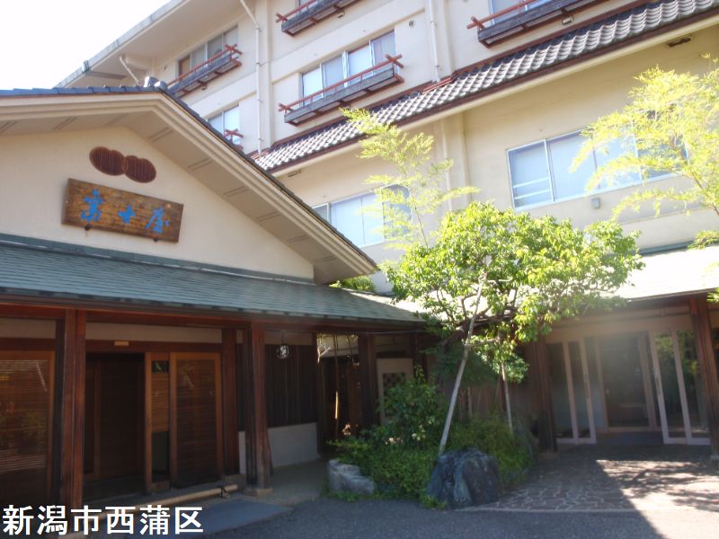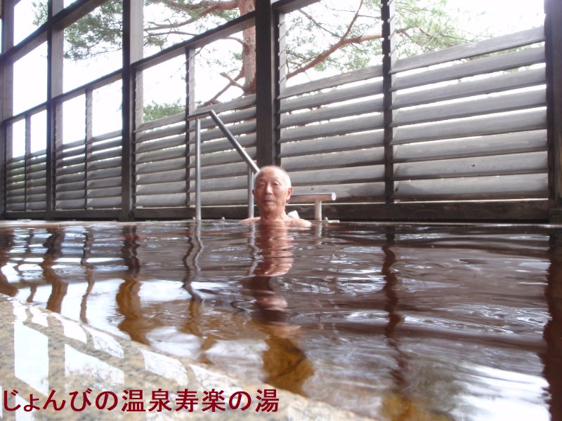 柏崎市の高柳「じょんびの村」内にある「楽寿の湯」「じょんびの」とは「ゆったりのんびり芯から心地よい」という意味のお国言葉です。黒姫山中腹から湧き出る温泉は、茶褐色の温泉で、お肌がスベスベになると評判の天然温泉です。浴室は天井が高く木造が主体なのでとても気持ちが良いです。内湯は桧の縁の10数人サイズの石造り浴槽で、浴槽内の一部エリアはジャグジーゾーンとなっていています。湯口は木箱で囲われていて、そこから定期的に冷たくもない暖かくもない源泉と推測できるものが浴槽に投入されています。湯量が十分でないのか出たり止まったりを繰り返すシステムです。湯はウーロン茶色透明で、ヨード臭、鼻に抜けるツンとする香りがあります。湯使いは循環・加温・加水・消毒の全てありです。露天風呂は、屋根付きの半露天風呂といった感じの造りで、雨雪でも大丈夫です。浴槽は横長で8人サイズの造りで、お湯は内湯同様でウーロン茶色透明なものです。湯口も同様に出たり止まったりを繰り返しています。源泉を口に含んでみたら、弱い重曹甘味がしました。