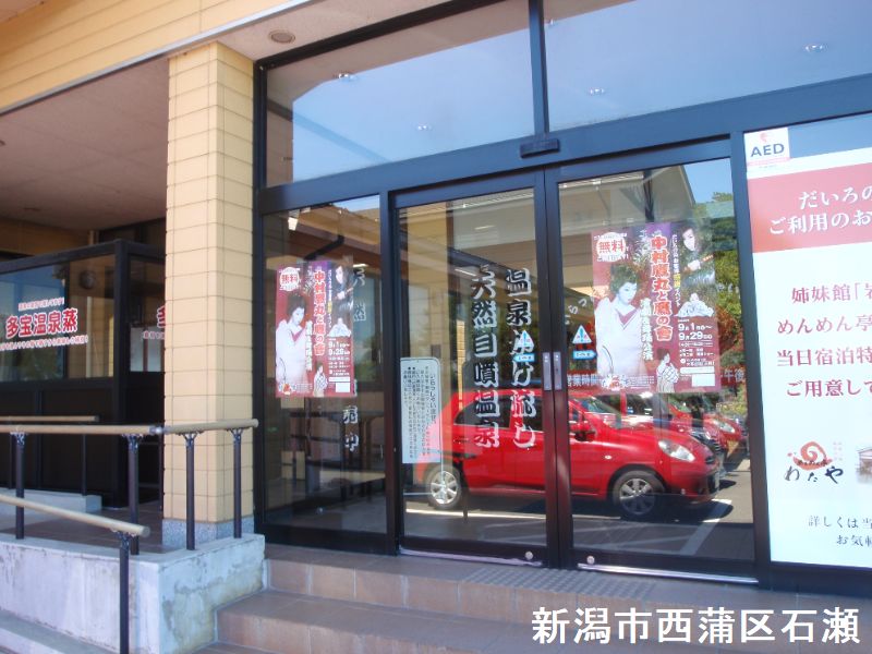 国道352号線沿いの海岸線にある日帰り温泉施設です。周辺施設には大里雪割草の里で、春は新潟県の草花に指定されている雪割草を鑑賞することができます。温泉は、大広間を挟んで左右に浴室があり、共に大浴槽があります。右側の浴室のみ露天風呂があります。浴室窓からは海が見えますが、風光明媚な場所ではなく、テトラポットの並ぶ海岸なので、絶景というわけではありません。露天風呂は外に出て階段を少し下りた所にあります。塀で囲まれており、開放感は乏しく、景色は見えません。湯は、淡黄色透明で、微薬臭と薄い塩味・微薬味があり、ツルスベ感があります。露天風呂の湯は内湯より濃厚で、黄色調がより強く、塩味・ツルスベ感も強く、トロリとした浴感があります。浴槽上の給湯口からは間歇的に非加熱源泉が投入されています。加熱された源泉は浴槽底から投入されています。内湯は槽内吸引があり、完全に循環されています。露天風呂はオーバーフローされて掛け流されていました。明らかに露天風呂の方が高濃度であり鮮度も高い印象です。