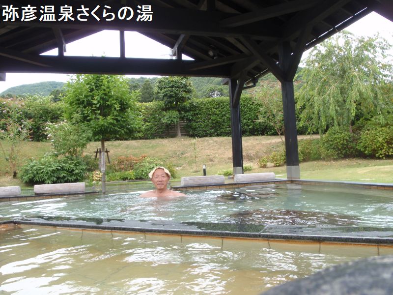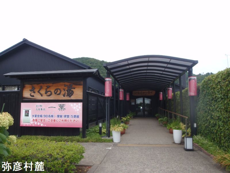 弥彦温泉にある日帰り温泉施設「弥彦桜井郷温泉 さくらの湯」は、県道2号泉沿い、霊峰弥彦の峰のふもとに湧く弥彦桜井郷の一角に位置しています。のんびりと弥彦の湯を楽しめる人気の日帰り温泉スポットです。浴室は、内湯に、大小22つの浴槽があり、微妙に温度差があり、大きい方が熱いですが、共に掛け流しになっています。ほかに掛け湯、腰掛け湯、ハーブ湯用の小浴槽、水風呂用の壺湯が2つあります。露天風呂には多彩な浴槽があります。軒下の長方形の浴槽のほか、1段下がった場所に、浅め、深めの浴槽、寝湯がなどあります。足裏刺激用の凸凹がある場所や寝転び湯として利用できる場所もあります。そのほか壺湯が3つあります。露天風呂も内湯と同様に掛け流しされており、気持ち良く入浴できます。湯はごくわずかに白濁、軽度の硫化水素臭があり、軽い塩味と卵味がします。黒い湯花が浮遊している事もあります。肌にやさしい柔らかな湯は、弥彦山の麓から引いているとの事です。この源泉が、加熱され、掛け流しで使用されています。