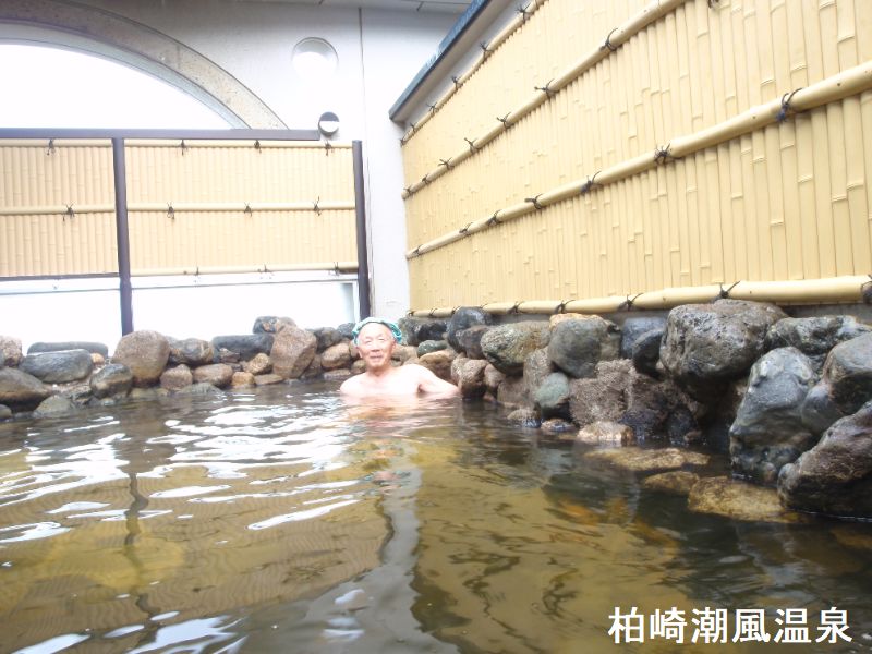 新潟県の海沿いのほぼ真中に位置する柏崎市は、新鮮な海の幸を水揚げする柏崎港、山間部ののんびりとした田園風景、また弥生時代の集落遺跡から戦国時代の城跡まで先人たちの足跡が多く残されているなど、豊かな自然と 歴史に彩られています。 鯨波松島温泉は鯨波海岸に程近い場所に湧く平成3年に湧き出た新しい温泉で、温泉は最上階にある大浴場が自慢です。夏場は日本海に沈む夕日を間近で見ることができます。鯨波海水浴場は日本の渚百選に入選したとても風光明媚な海岸です。内風呂のみで、露天風呂はありません。窓に沿って細長い浴槽があります。奥の湯口からはドバドバ源泉が投入され泡立っています。投入量に見合うほどではありませんが、湯船の縁からサワワとオーバーフローしています。お湯は淡い黄色で、わずかに白濁し、無臭で海水っぽい塩味がします。ややつるつるする感があり結構なお湯です。浴場は6階にあるため、眺望はかなり良いです。夏にはお風呂から正面の水平線に夕日が沈むのを見ることができるようです。晴れた日は佐渡島まで望めるらしいですが、この日は曇り空で見えませんでした。自家源泉なので湯量は豊富で加水する事なく温泉をそのまま入れております。そのため入浴すると、肌がすべすべになるとかいつまでもホッカホカします。
