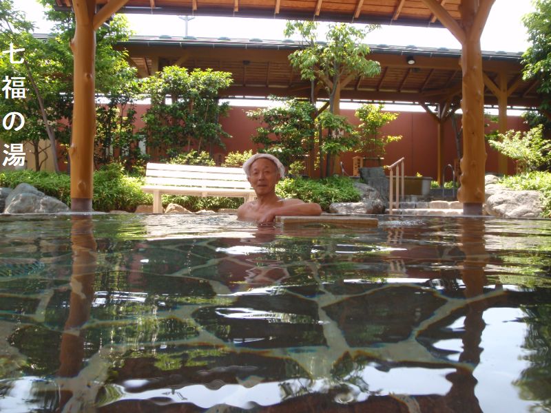 開放感あふれる本格的な野天風呂や、寝転んでお湯を楽しむ転寝湯座敷、そして名物の「七福の壷湯」など、バラエティー豊かなお風呂が楽しめます。「天然温泉上越の湯」は、北陸道上越インター南の大型ショッピングゾーンである上越ウイングマーケット内のカウボーイの一角を改装して作られた大型温泉施設です。北海道資本のカウボーイの子会社であるグルメボーイの経営で、2004年10月18日にオープンしました。浴室には、掛け湯、長方形の大浴槽のほか、円形のジャグジー、寝湯、水風呂、露天風呂、露天の座湯、低温備長炭サウナ、高温サウナ、ブラックシリカ岩盤浴、さらに垢(あか)すりコーナー等があり、設備的には充実していました。温泉としましては、源泉名は上越の湯で、泉質はナトリウム-塩化物・炭酸水素塩泉で、源泉温度は25.3℃、ガス性除く成分総計は1330mg/kgでした。加熱循環でしたが、淡黄緑色透明、微薬味・微薬臭がある湯は、若干のツルスベ感があり、肌に優しい柔らかな湯でした。