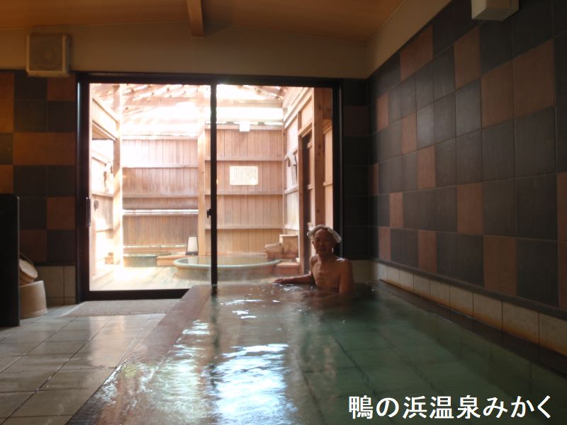 海水浴はもちろん、地引網体験(冬期休止)を楽しむ事ができる日本海沿いの鵜の浜温泉街に建つホテルです。観光にも便利ですが、効能あらたかな天然温泉を使った多彩なお風呂も魅力的です。泉質は含鉄泉で弱塩化物泉の温泉です。体の真から暖められ疲れが抜けていきます。最上階にある露天風呂は、日本海展望ジャグジーがあります。目の前に日本海が広がりずいぶんと眺めも良く、外の空気の冷たさとお湯の温かさが、なんとも言えない気持ちの良さです。日帰り入浴ができるのは男女別の内湯と露天風呂です。内湯は循環ですが露天風呂は加温掛け流しの五右衛門風呂と源泉温度27.4℃の冷泉風呂があり、黄色濁り、少アブラ臭のする強食塩泉を楽しむことが出来ます。五右衛門風呂はすのこの下に熱い湯を通したパイプを引いて加温しているそうです。源泉を利用した冷泉風呂は、熱い温泉と冷泉の交互入浴は、体がすっきりして気持ち良いです。思いがけず鵜の浜温泉の源泉を楽しめました。「五右衛門風呂」という源泉は、お湯が茶色で塩味です。湯垢(ゆあか)と呼ばれて湯船中でゆらぎ、沈みし薄茶色大・小の浮遊物より生じる固遊物は有効成分がたっぷり含まれた湯花です。